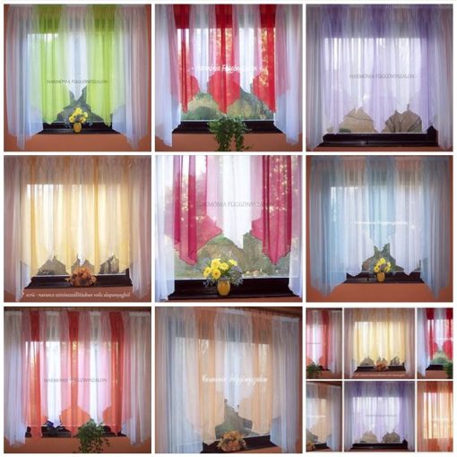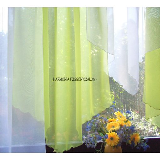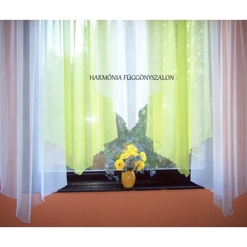 Kivi zöld és fehér színű kész cakkos voile függöny.