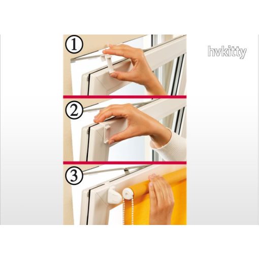 A nyíló ablakok esetén a rolót két pattinthatós füllel kell felakasztani a nyíló felső részére.