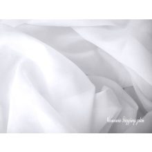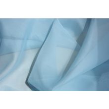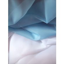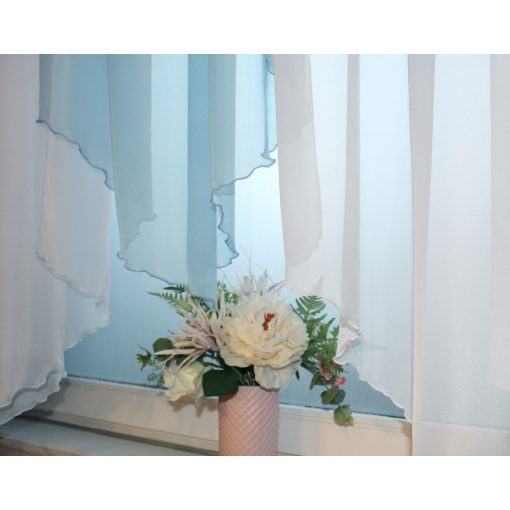 Világoskék és fehér színű kész voile függöny.