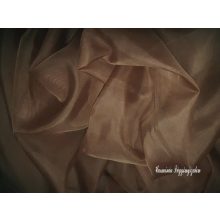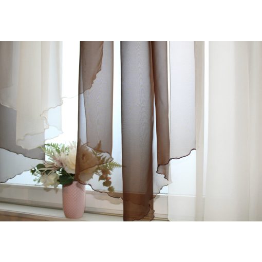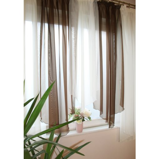 Ecrü és sötétbarna színű kész voile függöny.