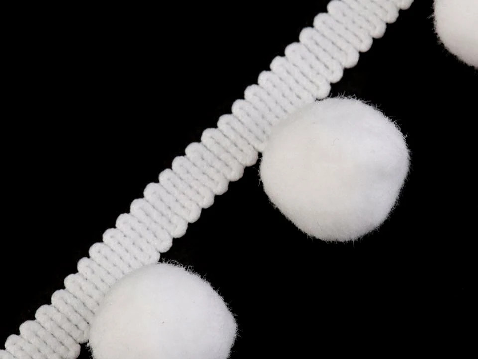 Hangulatos, vidám bojtos fehér paszomány 38 mm széles ebből a bojt 20 mm.